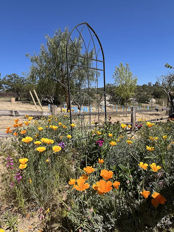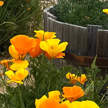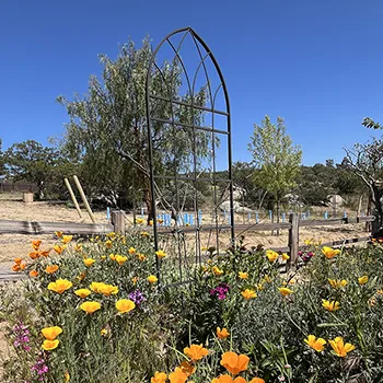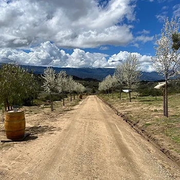 Feel free to walk around and see how many different types of plants, trees and vegetation you can spot. You will see over 130 living protected Manzanita Trees and various other indigenous trees. When in season, enjoy some fresh fruit picked fruit from our Santa Rosa PlumTrees , Dapple Dandy Pluot Trees, Fantasia Nectarine Trees, Apricots, Black Cat plum Trees, Mariposa Plum Trees, Gala Apple Trees, Granny Smith Apple Trees, Craig Crimson Cherry Trees, Satsuma Plum Trees. We also have a new Vermantino Grape Vineyard to wander through. Lastly, our main crop is our budding Lavender fields of Grosso Lavender, Sweet Melissa Lavender and Sache Lavender.