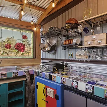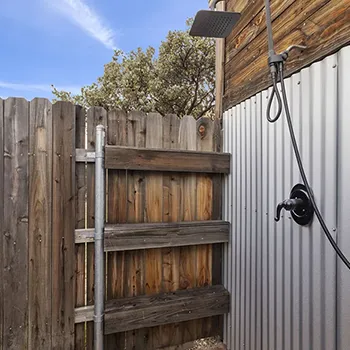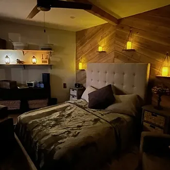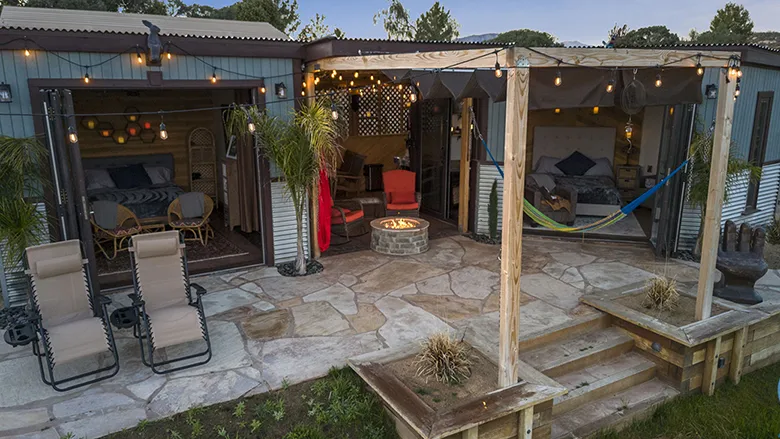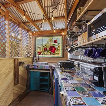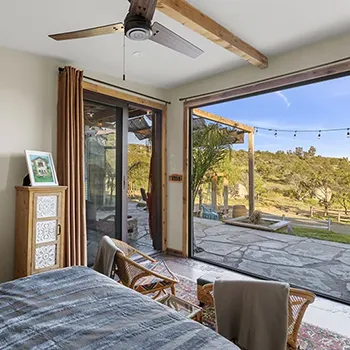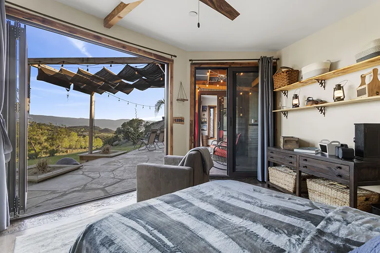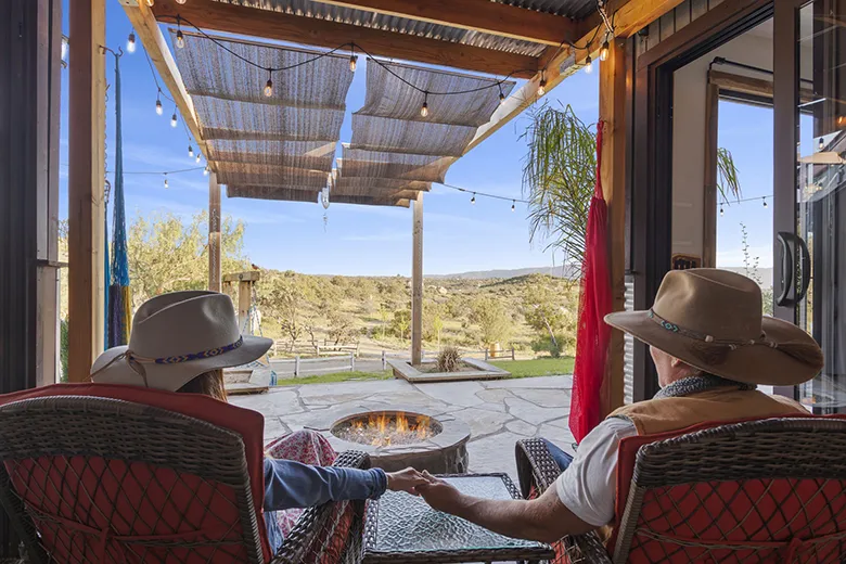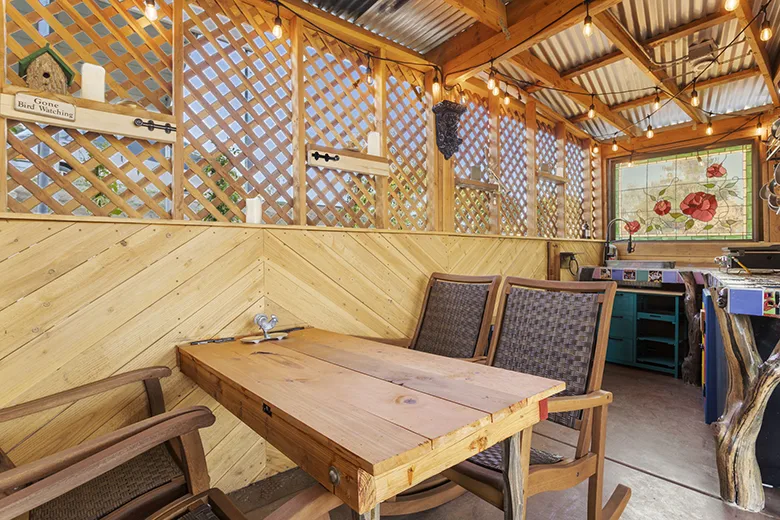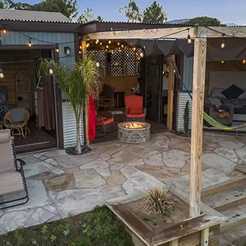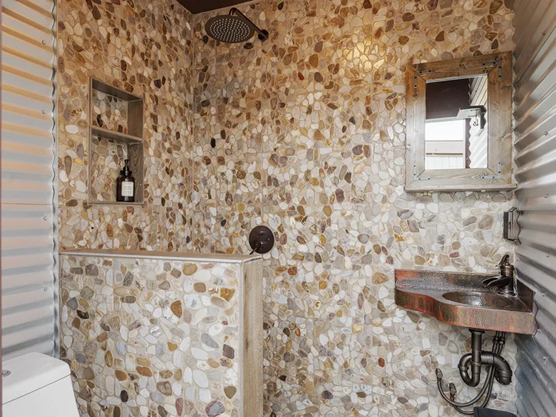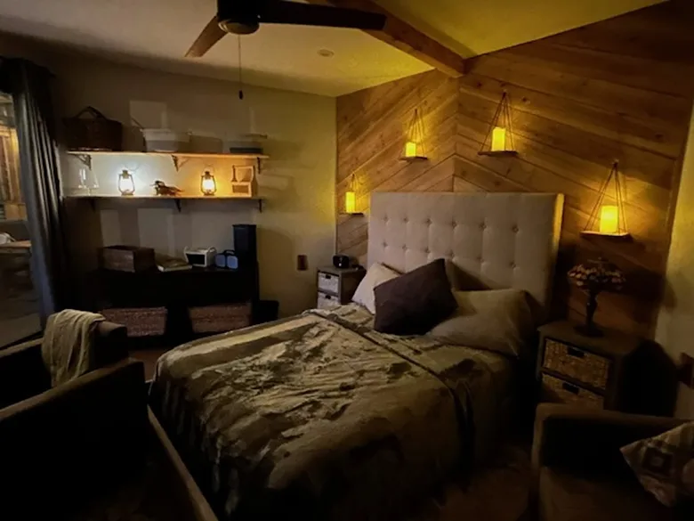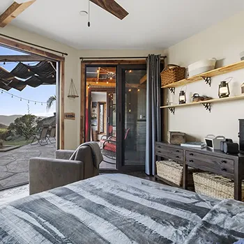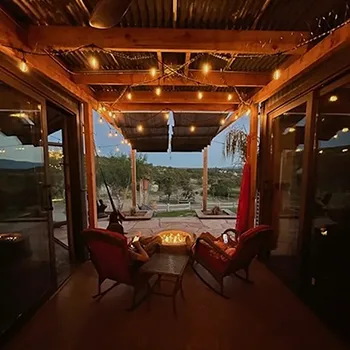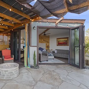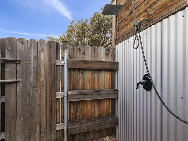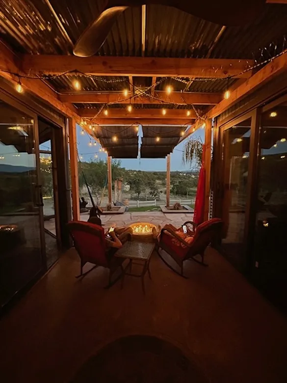 Inside the cabin you will love little details like the dead Manzanita trees in the kitchen, over 120 De Las Muertas tiles to find the best one to represent your style. Inside each room you will love feeling the fresh air breeze with your accordion wall doors wide open as you watch sun go down and paint it's color across miles of nature. The outdoor living area and kitchen are perfect for those who love being outdoors feeling and seeing nature all around you. You will love sitting around the gas fire pit on those beautiful nights, and every night is beautiful up here. Enjoy every morning or night in the HEATED outdoor shower under the sun or stars. Just in case, you like it inside, there is also a beautiful stone wall HEATED indoor shower in the detached bathroom.